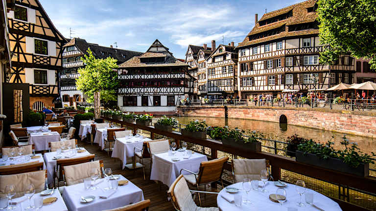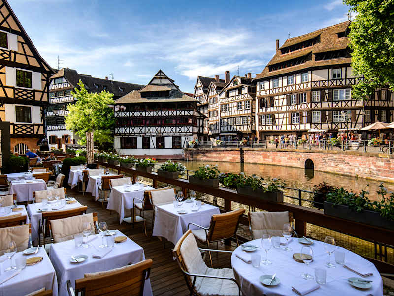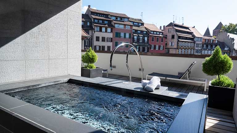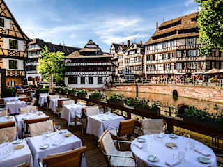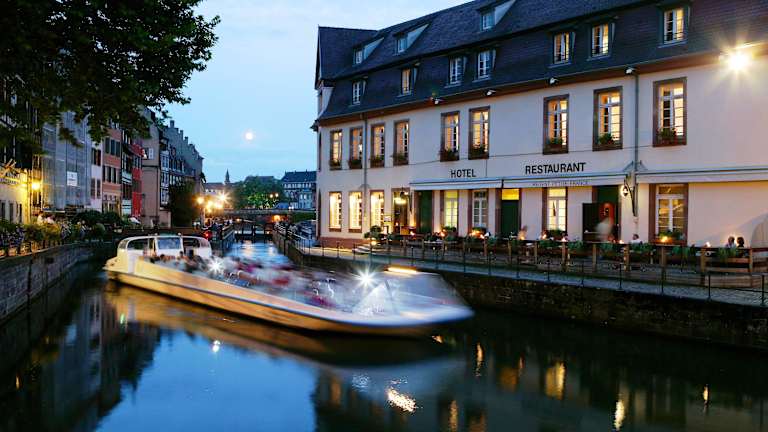 Es erwartet Sie ein reichhaltiges Frühstücksbuffet, das jeden Morgen mit frischen, regionalen Produkten serviert wird. Das hoteleigene Restaurant „Le Pont Tournant“ bietet eine raffinierte französische Küche in elegantem Ambiente. Mit Blick auf die Ill können Sie hier regionale Spezialitäten genießen, die mit frischen Zutaten und viel Kreativität zubereitet werden. Im Sommer lädt die Terrasse mit herrlichem Blick auf das Wasser zu einem besonderen kulinarischen Erlebnis ein. Die Bar „Champagne Bar“ des Hotels ist der ideale Ort zum Entspannen. Hier können Gäste aus einer Auswahl an Weinen, Champagnern und Cocktails wählen – perfekt für einen Aperitif oder einen gemütlichen Abend in stilvollem Ambiente.
