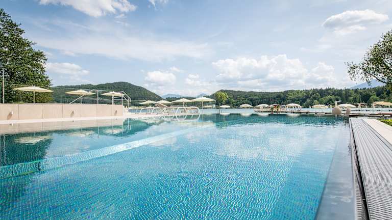 Urlauben bedeutet für Sie Ruhe, Entspannung und den Alltag ganz weit weg wissen? Im Hotel & Spa Sonne**** erwartet Sie noch viel mehr. Die Lage direkt am Ufer des Klopeiner Sees, dem wärmsten Badesee Österreichs mit Trinkwasserqualität ist einzigartig von der aus sich ein Panorama über Berge und den See bietet. SeenWellness in einem 2023 neu gestalteten Wellnessbereich des Sonne See Spa inklusive Ruheraum, Innen- und Außenpool und Whirlpool. Sie genießen Seenfitness, unschlagbare Golfangebote im 2,5 km entfernten Golfpark Klopeinersee und im Seerestaurant eine kulinarische Vielfalt Südkärntens mit mediterranen Einflüssen der Nachbarländer Italien und Slowenien. Die Nähe zur Landeshauptstadt Klagenfurt und den angrenzenden Ländern bieten genügend Ideen für Tagesausflüge. Im Sonne Seebad mit großer Liegewiese ist für Sie ein persönlicher Traumplatz inklusive Sonnenschirm während Ihres gesamten Urlaubs reserviert - damit ist unbeschwertes Sonnen-, Bade- und Sportvergnügen garantiert! Chillen auf der Wohlfühlterrasse in der gemütlichen Lounge. Für vielfältige Unterhaltung sorgen das Nachtleben und die Einkaufsmöglichkeiten im nahen Zentrum. Der See als Erlebnisraum mit seiner im Jahr 2012 designten Seepromenade liegt gleich um die Ecke und lädt zum Flanieren oder Walken ein. Die Kunstmeile mit Plätzen und Plattformen zeigt den See aus vielen neuen Perspektiven und lädt zum Verweilen ein. Aufmerksame Rundum-Betreuung, familiäre Atmosphäre, besondere Genussmomente, Wohnkomfort zum Wohlfühlen, südlich herzliche Gastfreundschaft und pure Lust am Leben - für einzigartige Urlaubsgefühle und sonnige Glücksmomente.