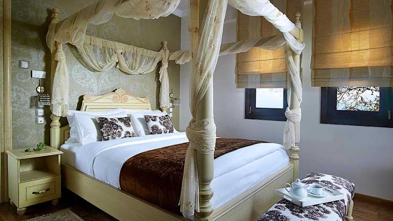 Die Zimmer im Stevalia Hotel & Spa sind elegant und klassisch eingerichtet, mit Holzböden, edlen Möbeln und einem Schreibtisch. Die Marmorbadzimmer verleihen den Zimmern eine luxuriöse Atmosphäre. Zur Ausstattung gehören ein 32-Zoll-LCD-TV, eine Minibar und hochwertige Pflegeprodukte.