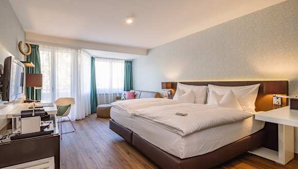 Sie übernachten in stilvollen und modernen Zimmern mit grossem Schreibtisch, bequemem Schaukelstuhl oder Sofa mit Flachbildschirm-TV, Minibar, Kaffeemaschine und Teekocher.