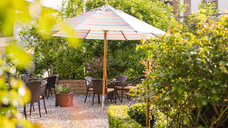 Tagsüber und am Abend laden der Garten oder die Hotelbar zum Entspannen ein.