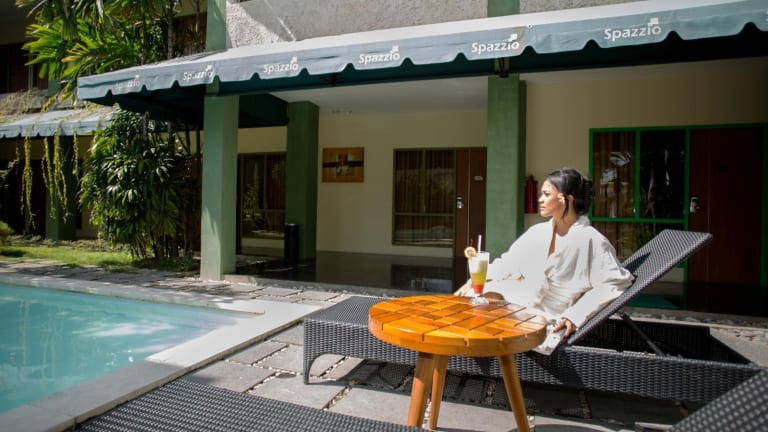 Das Spazzio Bali Hotel in Legian ist die perfekte Wahl für einen entspannten Aufenthalt auf Bali. Das Hotel bietet moderne Zimmer, einen Außenpool und wohltuende Wellnessangebote. Die Lage des Hotels ist ideal, da es nur wenige Fahrminuten von den beliebten Stränden Kuta Beach und Double Six Beach entfernt ist. Genießen Sie die indonesische und internationale Küche im hoteleigenen Restaurant und lassen Sie sich von dem freundlichen Personal verwöhnen.