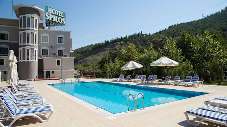 Das Spilos Hotel bietet haustierfreundliche Unterkünfte und ist ein idealer Rückzugsort im Wald von Manisa, nur 20 km von Izmir entfernt. Mit modernen Annehmlichkeiten wie kostenfreiem WLAN und einem voll ausgestatteten Fitnesscenter bietet das Hotel den perfekten Ort für Entspannung und Erholung inmitten der Natur. Genießen Sie den Außenpool, die Sauna und das Türkische Bad sowie die hochmodernen Anwendungsräume.