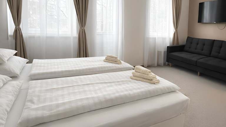 Die Zimmer des Hotels Sport Houštka sind mit einem Flachbild-TV mit Kabelkanälen ausgestattet und verfügen über ein eigenes Badezimmer mit Dusche und kostenlosen Pflegeprodukten. Kostenloses WLAN ist in allen Wohneinheiten verfügbar und auszuwählen sind Zimmer mit einem Balkon. Bettwäsche und Handtücher werden bereitgestellt.