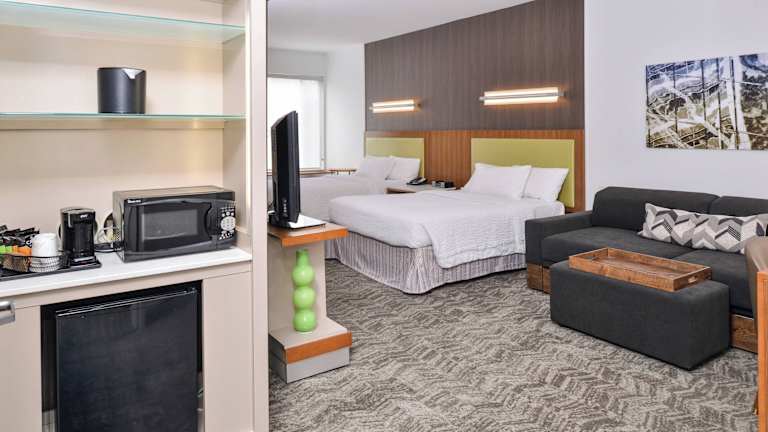 Die Suiten im SpringHill Suites Ashburn Dulles North bieten eine komfortable und moderne Unterkunft. Jede Suite verfügt über eine Küchenzeile, einen Flachbild-TV und eine iPod-Dockingstation. Eine separate Sitzecke mit einem Schlafsofa ist ebenfalls vorhanden.
