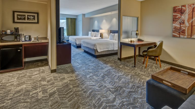 Die Suiten im SpringHill Suites by Marriott New Bern bieten den Gästen ein komfortables und stilvolles Ambiente. Jede Suite verfügt über eine Klimaanlage, einen LCD-Sat-TV und eine gut ausgestattete Küchenzeile mit Mikrowelle, Kühlschrank und Kaffee-/Teezubereitungsmöglichkeiten. Die Badezimmer sind modern und sauber, mit einer Dusche, einem Haartrockner und luxuriösen Bademänteln.