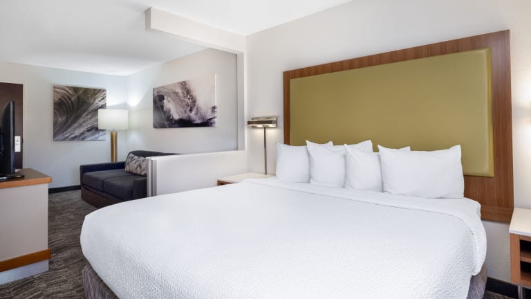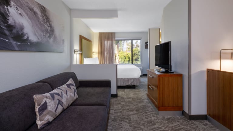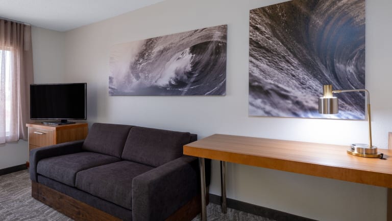 Die geräumigen Suiten im SpringHill Suites Pasadena Arcadia sind mit modernen Annehmlichkeiten ausgestattet, um Ihren Aufenthalt so angenehm wie möglich zu gestalten. Jede Suite verfügt über einen separaten Wohnbereich mit einem bequemen Sofa und einem Schreibtisch. Zur weiteren Ausstattung gehören ein Kabel-TV mit Pay-per-View-Kanälen, eine iPod-Dockingstation, eine Mikrowelle und ein Kühlschrank. Die klimatisierten Zimmer bieten auch eine angenehme Atmosphäre für eine erholsame Nachtruhe.