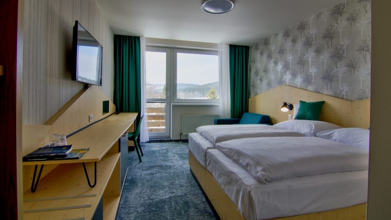 Das 4-Sterne Hotel Srni und 3 Sterne Hotel Depandance in Srni ist für einen Aktiv- oder Wellnessurlaub gut geeignet. Es wurde im Jahr 2014 mit dem Prüfsiegel HolidayCheck Quality Selection prämiert. Etliche Anziehungspunkte, wie der Burg Karlsberg / Kašperk, der Nationalpark Šumava, das Tal Amalino udoli sowie die Kirche Mourenec, befinden sich in kurzer Fahrentfernung.