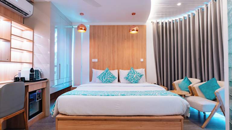 Die Unterkunft befindet sich in Hulhumalé, nur weniger als 80 Meter vom Strand Eastern/Hulhumale Beach entfernt. Der Internationale Flughafen Velana liegt 1 km entfernt, was einen bequemen Zugang ermöglicht. Weitere Attraktionen in der Umgebung sind der Henveiru Park, etwa 7,2 km entfernt, und der Villa College QI Campus, rund 7,4 km entfernt.