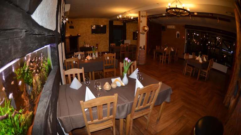 Im Hotelrestaurant können Sie traditionelle polnische Spezialitäten genießen. Das Restaurant bietet eine gemütliche Atmosphäre und im Sommer können Sie Ihre Mahlzeiten auch im Garten des Hotels einnehmen.