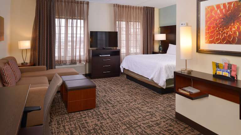 Die Zimmer im Staybridge Suites Indianapolis-Fishers sind komfortabel und bieten moderne Annehmlichkeiten. Jedes Zimmer verfügt über einen Flachbild-TV, kostenfreies WLAN und eine voll ausgestattete Küche. Genießen Sie den Komfort einer eigenen Küche, um Ihre eigenen Mahlzeiten zuzubereiten. Darüber hinaus bietet das Hotel Abendunterhaltung mit kostenlosen Getränken und Häppchen, so dass Sie Ihren Aufenthalt entspannt ausklingen lassen können.