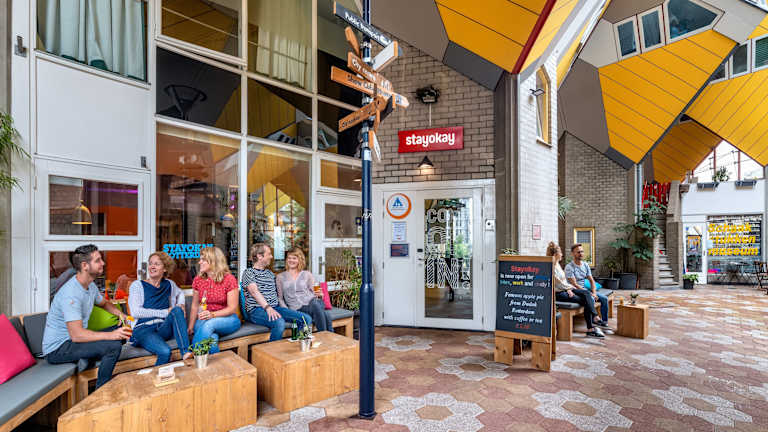 Das Stayokay Hostel Rotterdam befindet sich im Stadtzentrum von Rotterdam und ist in einem der berühmten Kubushäuser untergebracht. Die Lage gegenüber der U-Bahn-Station Blaak ermöglicht eine bequeme Anreise und bietet eine gute Anbindung an die öffentlichen Verkehrsmittel. In unmittelbarer Nähe befinden sich das Maritiem Museum und das zentrale Einkaufsviertel. Die Lage des Hostels ist ideal, um die Stadt zu erkunden und die vielen Attraktionen zu besichtigen.