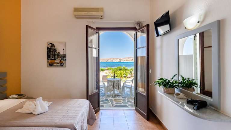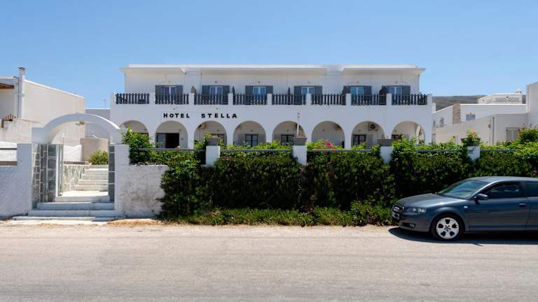 Das Hotel Stella liegt in Parikia, nur wenige Meter vom Sandstrand entfernt. Es ist ein idealer Ausgangspunkt, um die Umgebung zu erkunden und das Meer zu genießen. In der Nähe gibt es auch verschiedene Restaurants, Geschäfte und Unterhaltungsmöglichkeiten. Parikia ist eine malerische Stadt mit engen Gassen und traditionellen weiß getünchten Häusern.