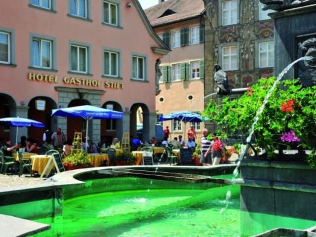 Die zentrale Lage im Herzen der Insel Lindau bietet einen idealen Ausgangspunkt für Ausflüge mit dem Schiff, Touren mit dem Fahrrad oder romantische Einkaufsbummel durch die Altstadt. Tagungsgäste brauchen nur 2 Minuten zu Fuß zur Inselhalle und Parkplätze sind auch ganz in der Nähe.