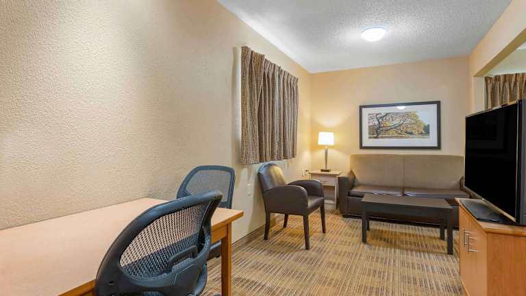Das Extended Stay America - Greenville - Haywood Mall ist die perfekte Wahl für längere Aufenthalte in Greenville. Mit voll ausgestatteten Küchen in jedem Zimmer und kostenfreiem WLAN bietet das Hotel alle Annehmlichkeiten, die Sie für einen komfortablen Aufenthalt benötigen. Die 24-Stunden-Rezeption steht Ihnen jederzeit zur Verfügung und das Hotel bietet auch praktische Einrichtungen wie Wäschemöglichkeiten und kostenlose Parkplätze. Das kostenlose Frühstück zum Mitnehmen sorgt dafür, dass Sie gut gestärkt in den Tag starten können. In der Umgebung finden Sie auch eine Vielzahl von Sehenswürdigkeiten wie die Haywood Mall, den Greenville Zoo und den Paris Mountain.