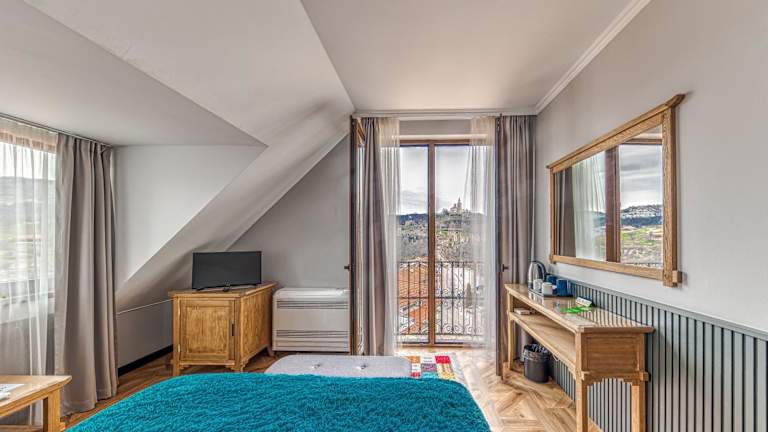 Das Hotel Studio in Weliko Tarnowo bietet seinen Gästen einen herrlichen Blick auf die Festung Tsarevets und den Hügel Trapezitsa. Mit seiner zentralen Lage am Ivan Asen I Platz ist das Hotel der ideale Ausgangspunkt, um die historische Altstadt zu erkunden. Die Zimmer sind mit Kabel-TV ausgestattet und einige bieten einen Blick auf Tsarevets. Das Hotel verfügt über eine Lobby-Bar und eine Terrasse, von der aus man ebenfalls den Blick auf die Festung genießen kann. WLAN ist in den öffentlichen Bereichen kostenlos verfügbar. Morgens können die Gäste ein hausgemachtes Frühstück genießen und auf dem hoteleigenen Parkplatz stehen Parkplätze gegen eine zusätzliche Gebühr zur Verfügung. In der Nähe des Hotels gibt es eine Vielzahl von Restaurants, in denen die Gäste kulinarische Köstlichkeiten genießen können.