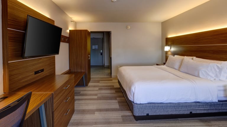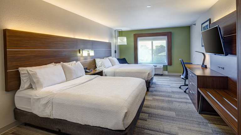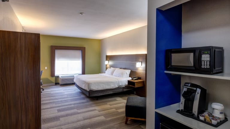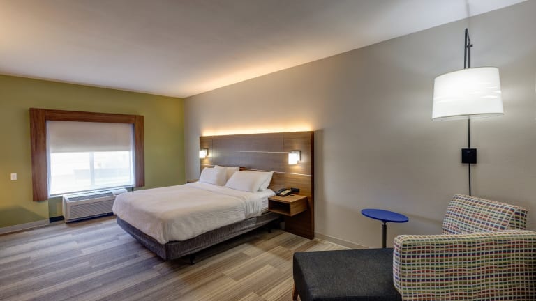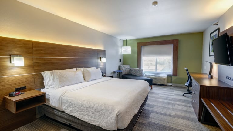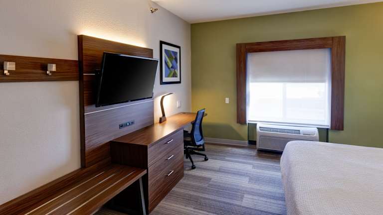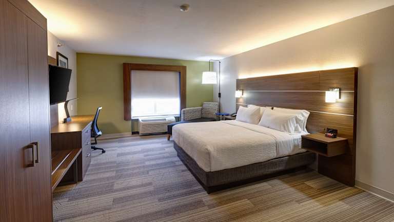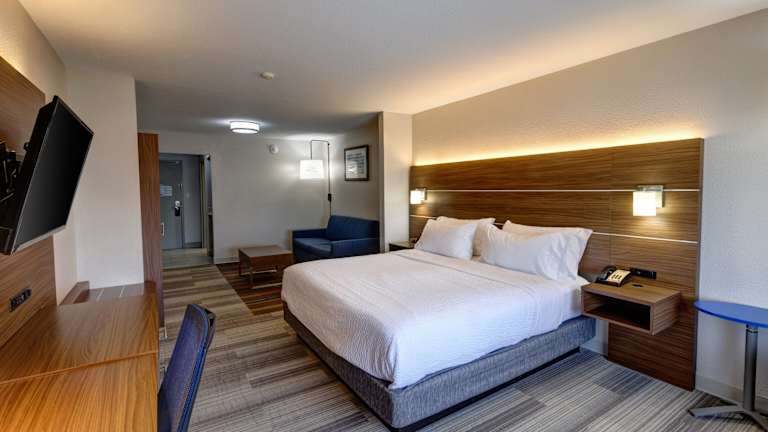 Die Zimmer im Holiday Inn Express Hotel & Suites Shelbyville sind traditionell eingerichtet und bieten den Gästen eine komfortable Unterkunft. Jedes Zimmer verfügt über einen Schreibtisch, eine Kaffeemaschine und einen Flachbild-Kabel-TV. Die Zimmer sind mit blauen Akzenten dekoriert und verfügen über einen kleinen Sitzbereich und einen Radiowecker.