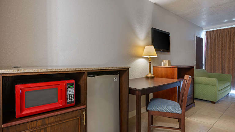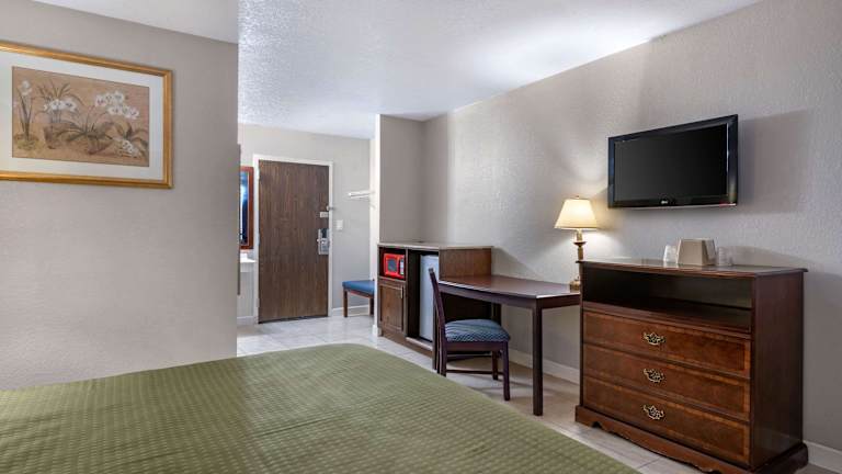 Die Zimmer im Hotel Rodeway Inn & Suites sind komfortabel eingerichtet und verfügen über ein gemütliches Doppelbett. Zustellbetten sind auf Anfrage erhältlich. Zur Ausstattung gehören ein Telefon, WLAN-Zugang und ein Badezimmer mit Dusche. Rollstuhlgerechte Zimmer mit barrierefreiem Badezimmer sind ebenfalls verfügbar.