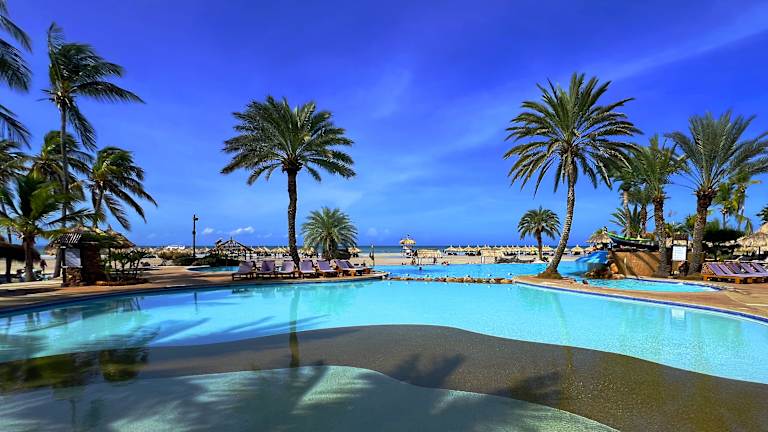 Die 150 Zimmer und 8 Suiten des Hotels erstrecken sich über eine Etage und sind bequem über einen Aufzug erreichbar. An der 24-Stunden-Rezeption können die Gäste jederzeit ein- und auschecken. Zur Ausstattung gehören WLAN, ein Safe, eine Wechselstube und ein Geldautomat. Das Hotel bietet auch rollstuhlgerechte Einrichtungen, einen Supermarkt und einen Souvenirshop. Im schönen Garten und auf dem Spielplatz können die Gäste entspannen. Parkplätze stehen zur Verfügung.