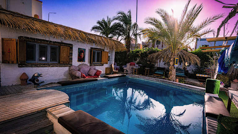 Das Surfers-Lounge-Dahab Lagoon with Swimming-Pool - Breakfast - Garden - Beduintent - BBQ - Jacuzzi liegt zentral in Dahab und bietet einen atemberaubenden Blick auf den Golf von Aqaba. Die Lage ermöglicht es Ihnen, die umliegenden Restaurants bequem zu Fuß zu erreichen. Der Flughafen Sharm El Sheikh ist etwa 80 km entfernt.
