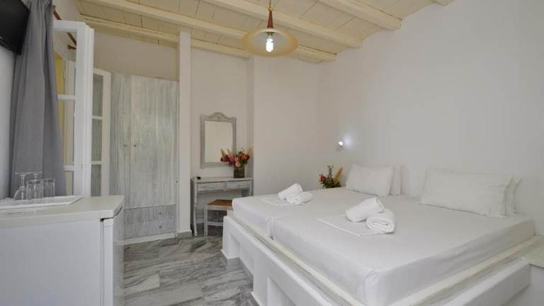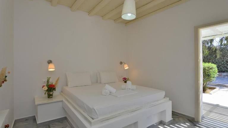 Das Surfing Beach Village Paros bietet eine Auswahl von 48 Zimmern, Bungalows und Apartments, die im traditionellen Kykladenstil eingerichtet sind. Jede Unterkunft ist klimatisiert und verfügt über Annehmlichkeiten wie einen Kühlschrank und einen TV. Die Zimmer sind von Bäumen und Blumen umgeben und bieten eine entspannte Atmosphäre.