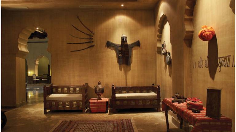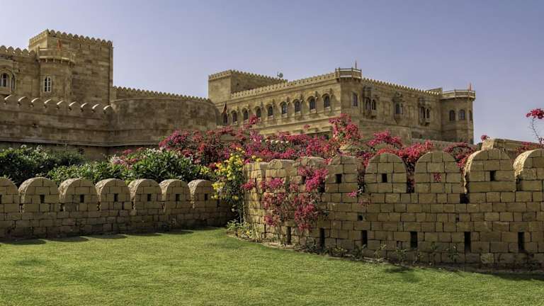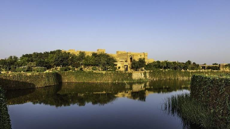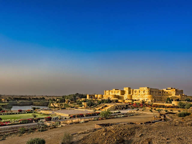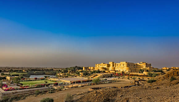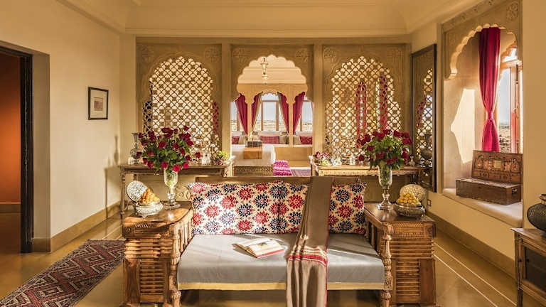Das Hotel Suryagarh in Jaisalmer ist ein majestätisches und luxuriöses Hotel, das Sie mit seiner beeindruckenden Architektur im Rajasthan-Stil und seinem authentischen Ambiente begeistern wird. Genießen Sie den Innenpool, das Fitnesscenter und das kostenfreie WLAN. Die eleganten Zimmer sind mit traditionellen Möbeln und antiken Kunstwerken ausgestattet und bieten modernen Komfort. Entspannen Sie im Spa, genießen Sie kulinarische Köstlichkeiten in den Restaurants und lassen Sie sich von den organisierten Aktivitäten und Ausflügen begeistern. Das Hotel Suryagarh bietet Ihnen einen unvergesslichen Aufenthalt in Jaisalmer.