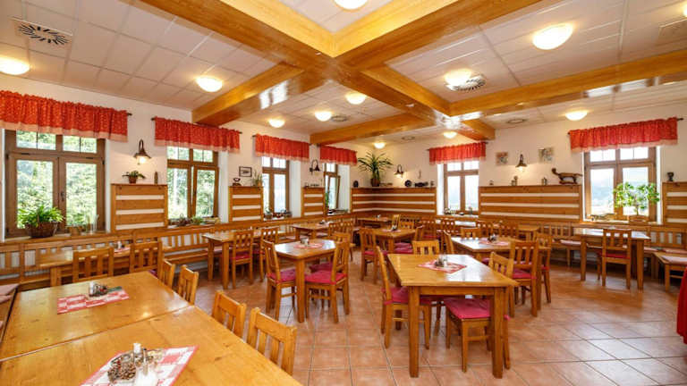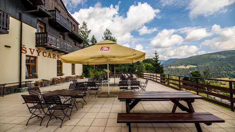 Das Restaurant des Hotels Švýcarská Bouda bietet internationale Küche sowie einige tschechische Klassiker. Genießen Sie Ihre Mahlzeiten auch auf der Terrasse im Freien.