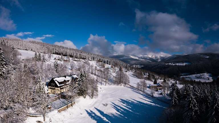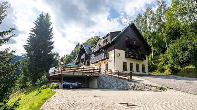 Das Hotel Švýcarská Bouda liegt im oberen Teil von Špindlerův Mlýn, im Ortsteil Labská. Die Pisten sind nur 100 m entfernt und der Skilift Labská ist in 300 m erreichbar. Das Horni Misecky Cross-Country Centre befindet sich in nur 150 m Entfernung. Das Skigebiet Hromovka ist 3 km entfernt. Das Zentrum von Špindlerův Mlýn erreichen Sie nach 2,5 km. Die Bushaltestelle Labská ist 400 m entfernt und Vrchlabí erreichen Sie nach 15 km.