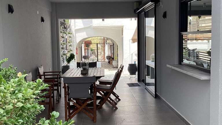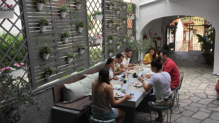 Im Hotel gibt es einen gepflasterten Hof mit einem Sitzbereich und einer Snackbar, in dem Sie entspannen und köstliche Snacks genießen können. In der Umgebung finden Sie auch eine Vielzahl von Tavernen und Cafés, in denen Sie die lokale Küche probieren können.