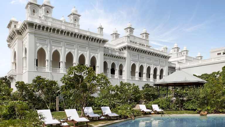 Das Hotel Taj Falaknuma Palace ist eine luxuriöse Unterkunft im Kolonial- und indischen Stil. Es bietet eine Mischung aus historischen Designelementen und modernem Komfort. Zu den Einrichtungen gehören ein Aufzug, eine Gepäckaufbewahrung, ein Safe, ein Geldautomat sowie diverse Freizeitmöglichkeiten wie eine Bibliothek und ein Spielzimmer. Das Hotel umfasst 60 Zimmer, die mit hochwertigen Annehmlichkeiten ausgestattet sind. Es stehen behindertengerechte Annehmlichkeiten und ein 24h-Sicherheitsdienst zur Verfügung.
