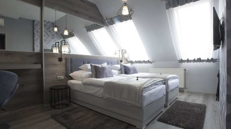 Das Hotel Talizmán bietet eine ideale Lage im Zentrum von Kecskemét und ist eine hervorragende Wahl für Ihren Aufenthalt. Die klimatisierten Zimmer sind komfortabel eingerichtet und verfügen über ein eigenes Bad sowie kostenfreies WLAN und Kabel-TV. Einige Zimmer bieten zudem einen Balkon. Das Hotel bietet kostenlose Parkplätze und serviert morgens ein leckeres Frühstück. Wenn Sie Halbpension wünschen, können Sie das mediterrane Restaurant in nur 50 m Entfernung besuchen. Der Bahnhof Kecskemét ist nur 1 km entfernt und das ungarische Mercedes-Benz Werk erreichen Sie in 6,5 km.