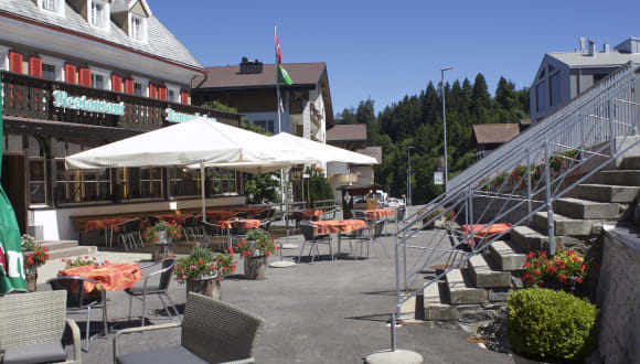Wir bieten Zimmer mit Dusche/WC, TV und Radio und einfache Zimmer mit fliessend Wasser und Dusche/WC auf der Etage. À la carte Restaurant mit ca. 120 Sitzplätzen und ein Saal mit ca. 60 Sitzplätzen. Halbpensionmenu im Angebot. Zimmerpreise inkl. Frühstück. Im Sommer eine grosse Gartenwirtschaft.