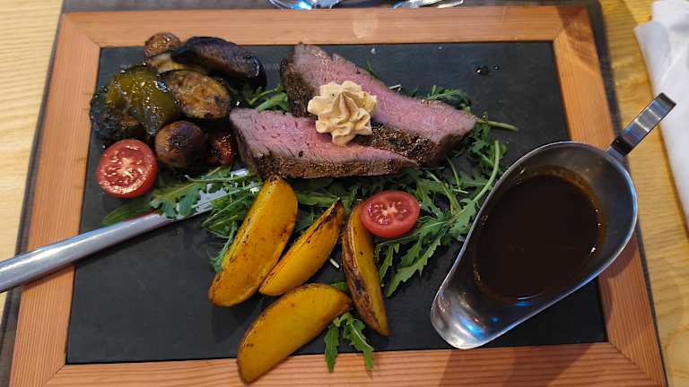 Im hoteleigenen Restaurant werden regionale und internationale Speisen serviert. Die Halbpension umfasst ein kontinental Frühstücksbuffet sowie ein 4-Gänge-Abendessen mit Wahlmöglichkeiten. Das Restaurant legt Wert auf österreichische Küche und traditionelle Tiroler Spezialitäten, viele Zutaten stammen vom eigenen Bauernhof. Es stehen außerdem gluten- und laktosefreie Gerichte auf Anfrage zur Verfügung.