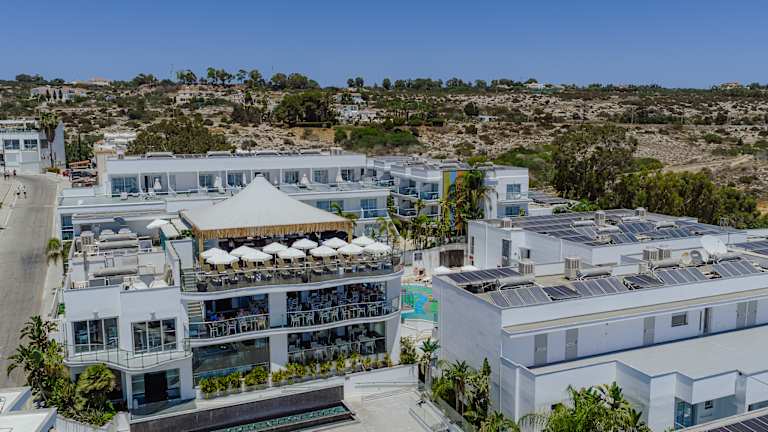 Situated just off the center of Ayia Napa, on a small hill overlooking the sea and right next to the medieval aqueduct and Stone River Forest. Grecian Beach, Ayia Napa's largest sandy beach is only a 10 minutes walk away , while the center is only approximately 5 minutes from the hotel. Thalassa Marine Museum is 2 minutes on foot! The center offers anything from restaurants, bars, shops to entertainment and night life.