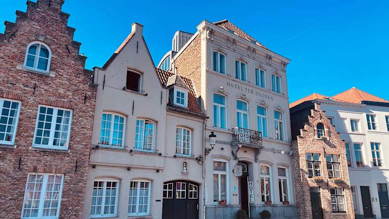 Das Hotel Ter Duinen befindet sich in ausgezeichneter Lage am Ufer des Kanals Langerei in Brügge. In nur 10 Gehminuten erreichen Sie den historischen Marktplatz und den beeindruckenden Belfried. Die zentrale Lage des Hotels ermöglicht es Ihnen, die Sehenswürdigkeiten, Restaurants und Geschäfte der Stadt bequem zu Fuß zu erkunden. Außerdem ist das Hotel gut mit dem Auto erreichbar und bietet eine gute Anbindung zu anderen Städten wie Damme und Gent. Die belgische Küste ist ebenfalls nur eine kurze Autofahrt entfernt.