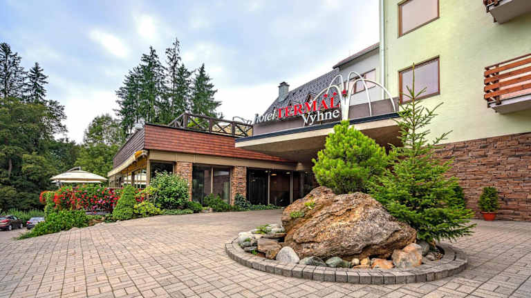 Das Hotel Termál in Vyhne ist der perfekte Ort für einen entspannten Urlaub inmitten der malerischen Berge der Štiavnické Vrchy. Hier erwartet Sie ein modernes Spa- und Wellnesscenter, komfortable Zimmer und köstliche Speisen im hauseigenen Restaurant. Genießen Sie die zahlreichen Freizeitaktivitäten wie Darts, Billard und Tischtennis oder erkunden Sie die nahegelegenen Attraktionen wie den Aquapark Vodny Raj und das Skizentrum Salamandra.