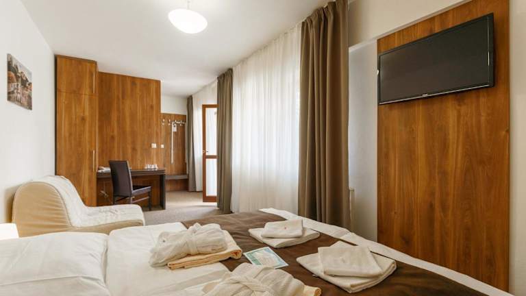 Das Hotel bietet eine Vielzahl von Freizeitaktivitäten, um Ihren Aufenthalt abwechslungsreich zu gestalten. Spielen Sie eine Runde Darts, Billard oder Tischtennis oder fordern Sie Ihre Freunde zu einer Partie Paintball heraus. Täglicher Zugang zum Wellnesscenter ist im Preis inbegriffen, wo Sie eine große Auswahl an Saunen, Massagen und Wellnessanwendungen genießen können. In der Nähe des Hotels finden Sie auch den Aquapark Vodny Raj, der Fitness-, Aerobic-, Squash-, Bowling- und Tennisplätze bietet. Das Skizentrum Salamandra ist mit dem Auto in nur 20 Minuten erreichbar.
