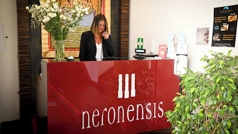 Die Zimmer im Hotel Terme Neronensis sind komfortabel und klimatisiert. Sie verfügen über einen Sitzbereich und einen Flachbild-TV. Das private Badezimmer ist mit kostenfreien Pflegeprodukten und einer Badewanne oder Dusche ausgestattet. Alle Zimmer bieten zudem einen Schreibtisch und einige Zimmer bieten einen herrlichen Blick auf die Stadt.