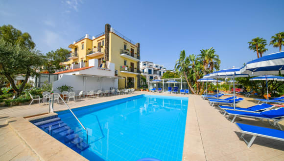 Das Hotel Terme Principe in Lacco Ameno auf Ischia bietet den Gästen einen angenehmen Aufenthalt in Strandnähe. Mit seinen zwei Pools, dem großen Garten und dem Wellnesscenter ist es der perfekte Ort, um sich zu entspannen und zu erholen. Die Zimmer sind gemütlich eingerichtet und einige verfügen über einen Balkon mit Gartenblick. Das Hotel bietet auch kostenfreien Zugang zum Wellnesscenter mit Innenpool und Türkischem Bad. Das Frühstücksbuffet bietet eine Auswahl an hausgemachten Köstlichkeiten und das hoteleigene Restaurant verwöhnt die Gäste mit regionalen Spezialitäten. Im Mai, Juni und September haben die Gäste auch kostenfreien Zugang zu einem Partnerstrand, einschließlich Sonnenliegen und Sonnenschirm.