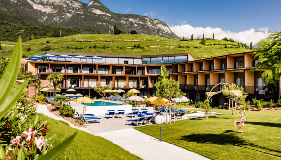 Unser 2017 neu errichtetes Haus liegt 200m vom schönen Kalterer See entfernt und bettet sich sanft in die hügeligen Weinberge. Von unseren großzügigen, lichtdurchfluteten Zimmern aus haben Sie einen wunderschönen Blick zum Kalterer See und bis zu den Gipfeln der Dolomiten oder Sie schauen in unseren grünen Garten. Frühstück, Abendessen oder Aperitif genießen Sie vom obersten Stockwerk aus mit wunderbarem Panorama in alle Himmelsrichtungen. Längenschwimmen oder Plantschen im Außenpool, aber auch drinnen. Und nach einem packenden Urlaubstag lockt die Wellnesszone mit Panoramasauna, Infrarotkabine, Dampfbad, Hallenbad und – ja, See(len)ruhe natürlich. Wanderer, Radfahrer, Familien, Pärchen oder Freunde - bei uns sind alle willkommen.