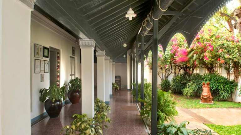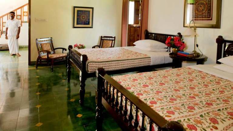 Die Zimmer im Hotel The Bangala Chettinad sind komfortabel und bieten eine angenehme Atmosphäre für Ihren Aufenthalt.