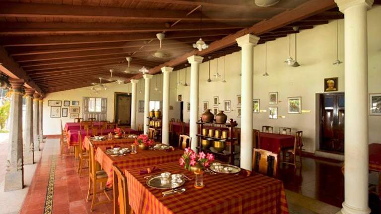 Das Restaurant des Hotels The Bangala Chettinad bietet köstliche indische Küche, die Ihren Gaumen verwöhnen wird. Beginnen Sie Ihren Tag mit einem leckeren Frühstück, das eine Auswahl an kontinentalen, asiatischen und vegetarischen Speisen bietet.
