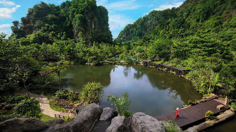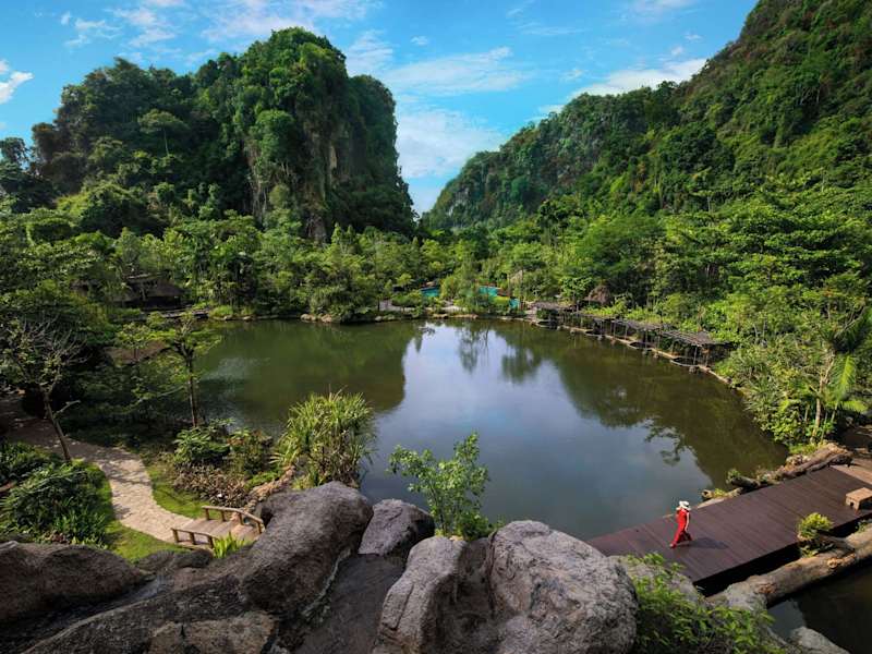 Das Eco-Hotel befindet sich etwa 8 km vom Stadtzentrum von Ipoh entfernt und bietet eine ruhige Umgebung, ideal für Erholungsuchende. In der Nähe befinden sich ein Golfplatz und der Bahnhof, was die Erreichbarkeit erleichtert. Die Unterkunft liegt vor einer eindrucksvollen Kulisse aus Kalksteinhügeln und ist von Thermalquellen umgeben.