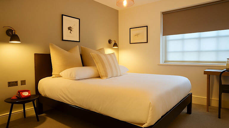 Das Hotel The Crown bietet eine breite Auswahl an Zimmern, die eine Mischung aus traditionellem und modernem Stil aufweisen. Eines der Highlights ist die Himmelbett-Suite, die im Film „Vier Hochzeiten und ein Todesfall“ zu sehen war. Jedes Zimmer ist komfortabel eingerichtet und verfügt über Annehmlichkeiten wie kostenfreies WLAN. Die traditionelle Atmosphäre des Hotels wird durch die sorgfältig ausgewählten Möbel und die liebevollen Details noch verstärkt.