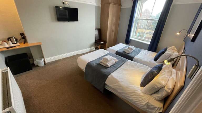 Die Zimmer im George Hotel sind gemütlich und in warmen Farbtönen eingerichtet. Viele Zimmer verfügen über ein eigenes Bad und alle Zimmer sind mit einem Flachbild-TV, einem Haartrockner und Tee-/Kaffeezubehör ausgestattet. Kostenloses WLAN steht in allen Zimmern und den öffentlichen Bereichen zur Verfügung.