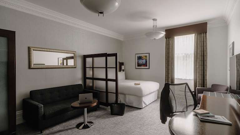 Die Zimmer im The Grand at Trafalgar Square sind modern eingerichtet und verfügen über luxuriöse Bettwäsche. Sie bieten Annehmlichkeiten wie eine iPod-Dockingstation, einen Arbeitsplatz, einen CD-Player sowie einen Flachbild-HD-Sat-TV mit Pay-per-View-Filmen. Bei der Innenausstattung wird die viktorianische Eleganz durch hohe Decken und originale Fenster hervorgehoben.
