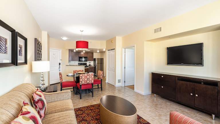 Das Grandview at Las Vegas bietet insgesamt 2056 Zimmer in einem 12-stöckigen Haupthaus und 8 Nebengebäuden. Das freundliche Personal an der Rezeption steht den Gästen rund um die Uhr zur Verfügung. Die Zimmer sind komfortabel eingerichtet und verfügen über eine voll ausgestattete Küche. Zur weiteren Ausstattung gehören Klimaanlage, Kabel-TV, Waschmaschine/Trockner und eine Whirlpool-Badewanne in jedem Badezimmer.