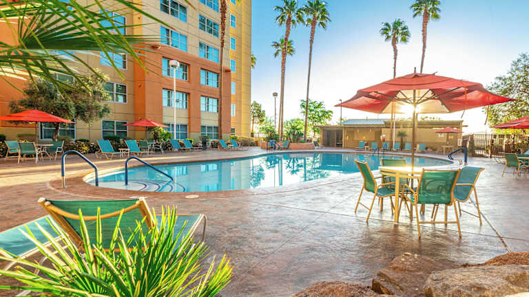 Das Grandview at Las Vegas bietet seinen Gästen eine ideale Lage, nur 9,6 km vom berühmten Las Vegas Strip entfernt und in unmittelbarer Nähe des South Point Casino. Das Hotel besticht durch einen Außenpool mit einem Wasserfall und geräumigen Suiten mit voll ausgestatteter Küche. Hier können Sie sich nach einem erlebnisreichen Tag in einer komfortablen Suite mit 1 oder 2 Schlafzimmern entspannen, die mit mehreren Kabel-TVs und einer Waschmaschine/Trockner ausgestattet ist. Jede Suite verfügt zudem über eine Whirlpool-Badewanne in jedem Badezimmer und ein Schlafsofa im Wohnzimmer. Das Grandview at Las Vegas bietet seinen Gästen kostenlosen Zugang zum hochmodernen Fitnesscenter und dem Whirlpool im Freien. Im Spielezimmer können Sie Videospiele spielen oder eine Runde Billard spielen. Erkunden Sie die aufregende Stadt Las Vegas, besuchen Sie Shows oder genießen Sie eine Zaubervorstellung. Das internationale Flughafen Mccarran ist nur 11 km vom Hotel entfernt.