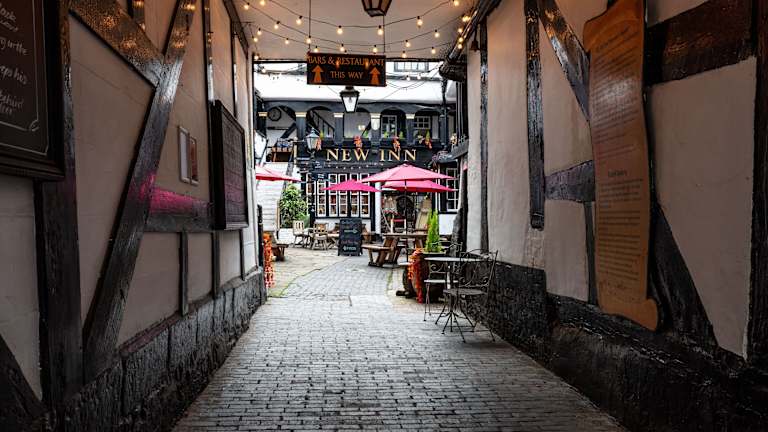 Im Herzen von Gloucester erwartet Sie das New Inn Hotel, ein wunderschön restauriertes Hotel aus dem 15. Jahrhundert mit einem mittelalterlichen Innenhof und einem traditionellen Pub. Hier können Sie in gemütlichen Zimmern mit originalen Elementen und freiliegenden Holzbalken übernachten und die historische Atmosphäre genießen. Das Hotel bietet auch ein traditionelles Restaurant mit britischen Gerichten und eine preisgekrönte Real Ale Bar. Die Lage des Hotels ist ideal, da es nur wenige Gehminuten vom Stadtzentrum, dem Einkaufszentrum East Gate und dem Bahnhof Gloucester entfernt liegt.