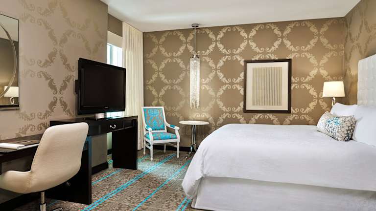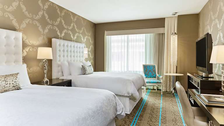 Die Zimmer sind klimatisiert und verfügen über eine Heizung, ein Doppelbett, ein Queensize-Bett, ein Kingsize-Bett oder ein Sofabett. Zudem sind ein Safe, eine Minibar, ein Schreibtisch, ein Kühlschrank, eine Tee-/Kaffeemaschine sowie ein Bügelset vorhanden. Zur technischen Ausstattung gehören ein Fernseher, ein Radio, ein CD-Player, ein DVD-Player, ein Telefon und WLAN. Die Badezimmer sind mit einer Dusche und einer Badewanne ausgestattet, und es stehen Haartrockner sowie Bademäntel zur Verfügung. Es gibt rollstuhlgerechte Zimmer mit barrierefreien Badezimmern.